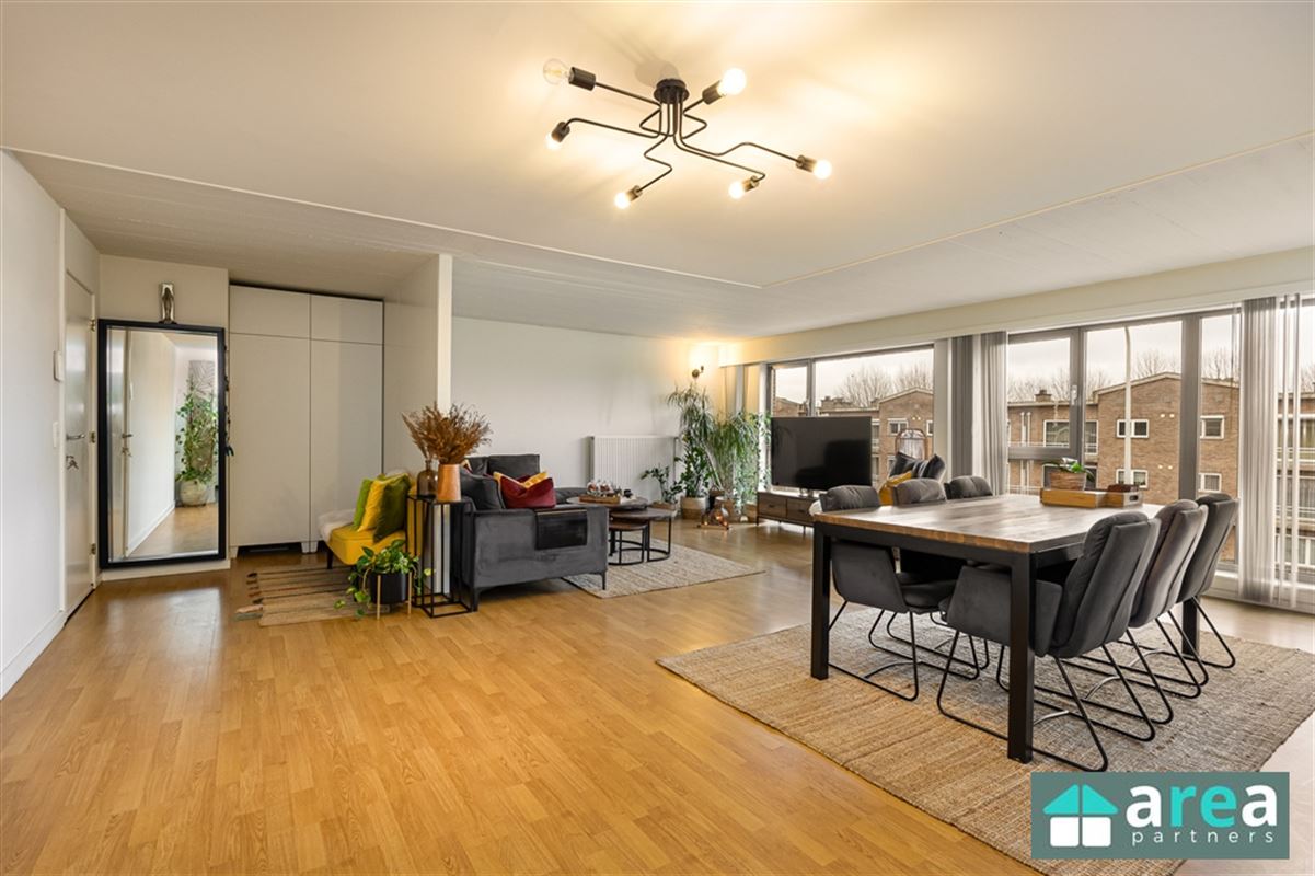 Bij het binnentreden van dit lichtrijke appartement komt men in de zeer ruime leef- en eetruimte met een gezamenlijke oppervlakte van maar liefst 50 m². Dankzij de grote raampartijen geniet deze ruimte van een overvloed aan natuurlijk licht, wat zorgt voor een aangename en open sfeer.